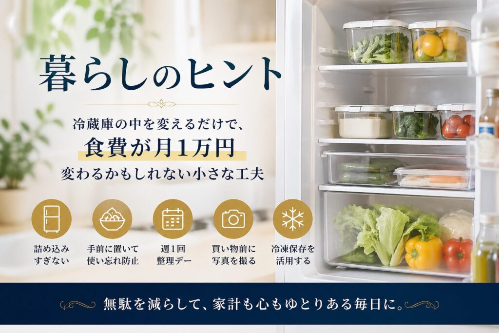 暮らしのヒント|冷蔵庫の中を変えるだけで、食費が月1万円変わるかもしれない小さな工夫
