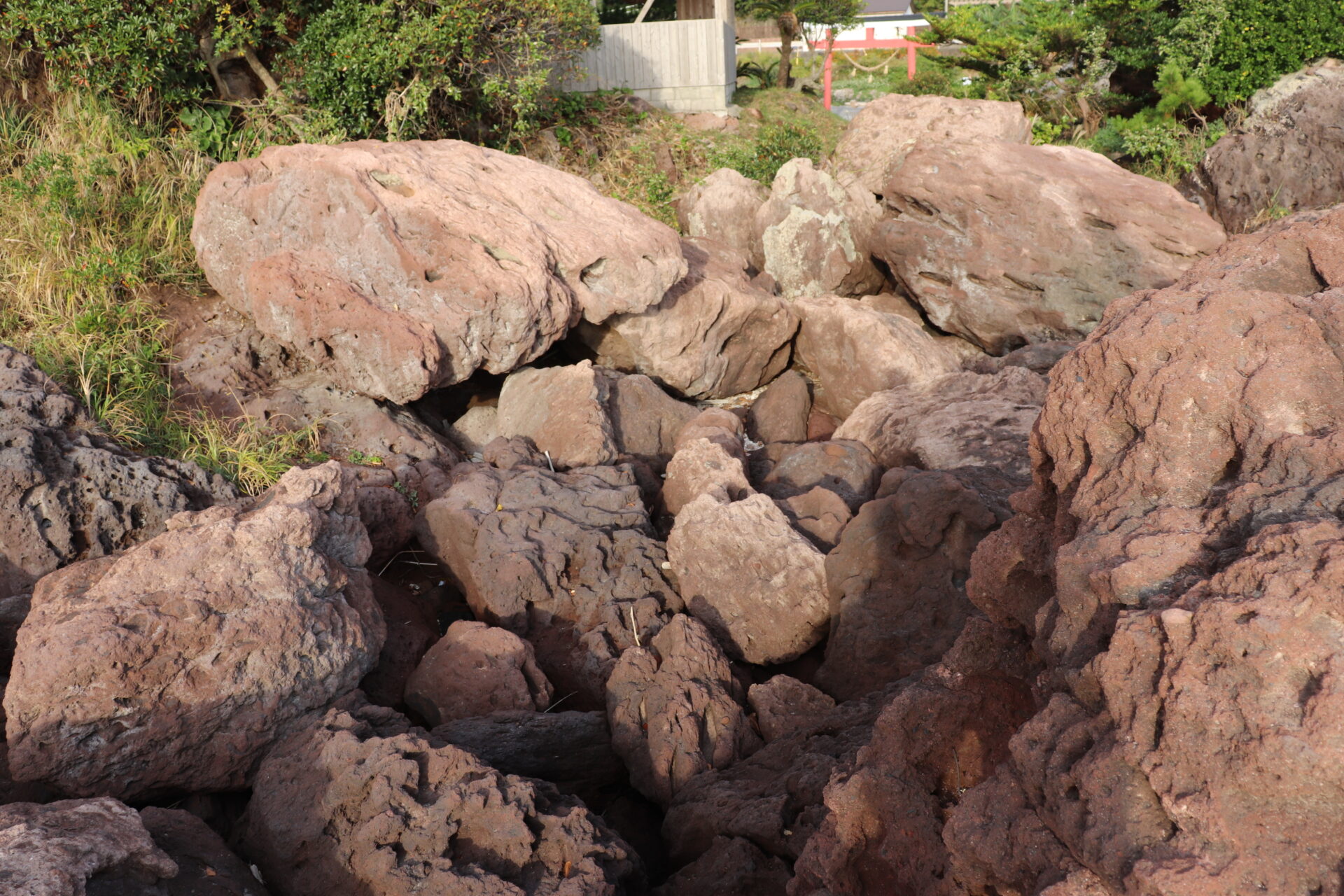 溶岩が固まった岩だと思う。赤い色しているから。