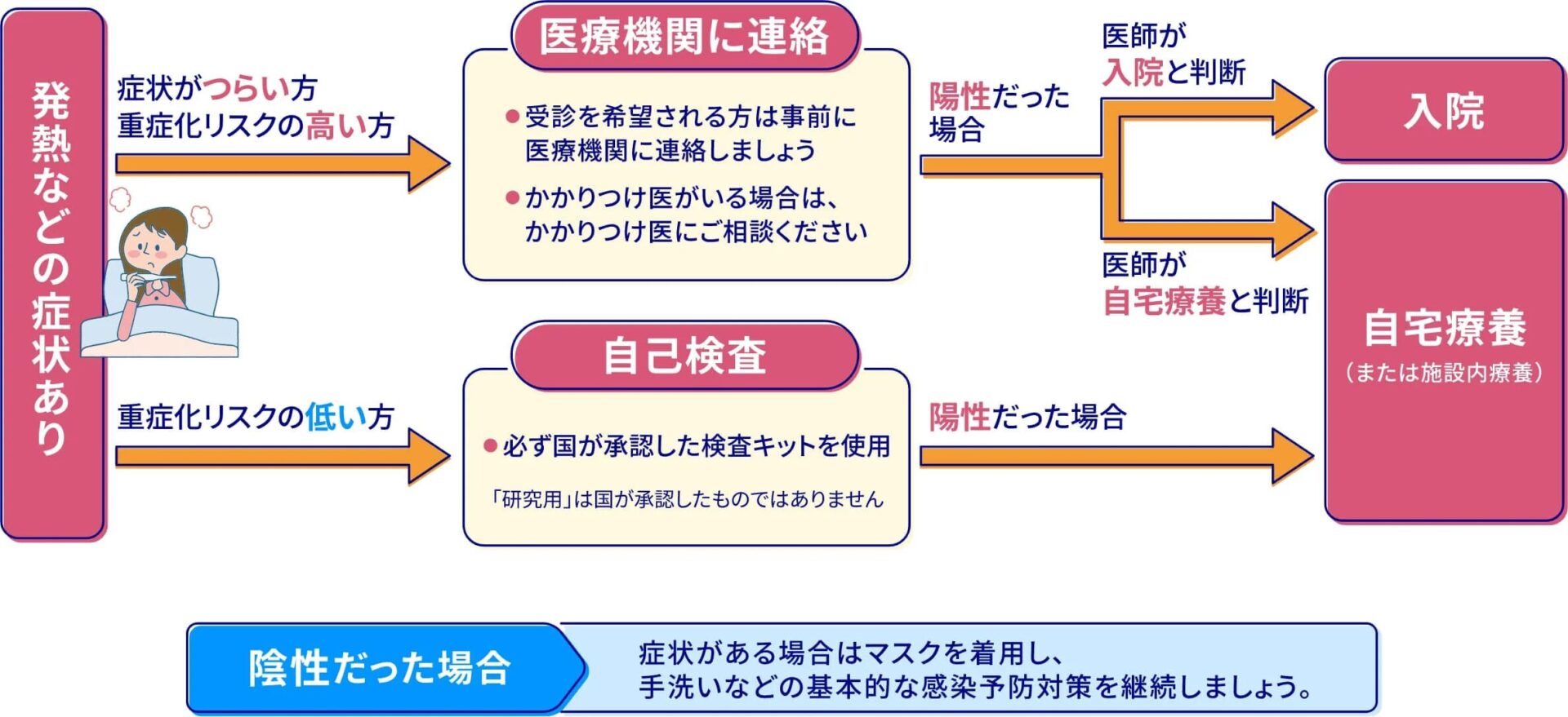 陰性だった場合でも、症状がある場合はマスクを着用し、