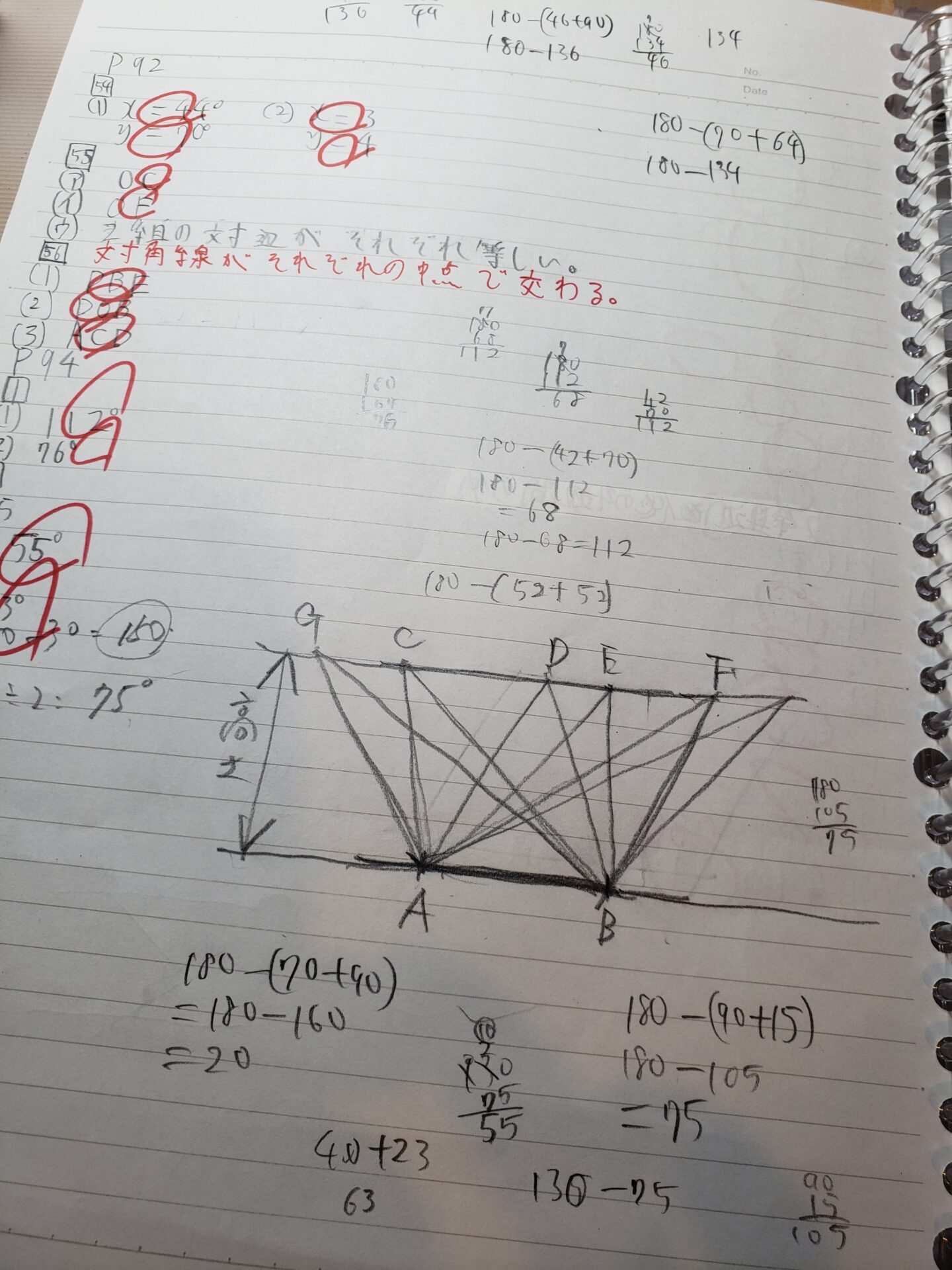 今日は、計算と1次関数と角度の問題。